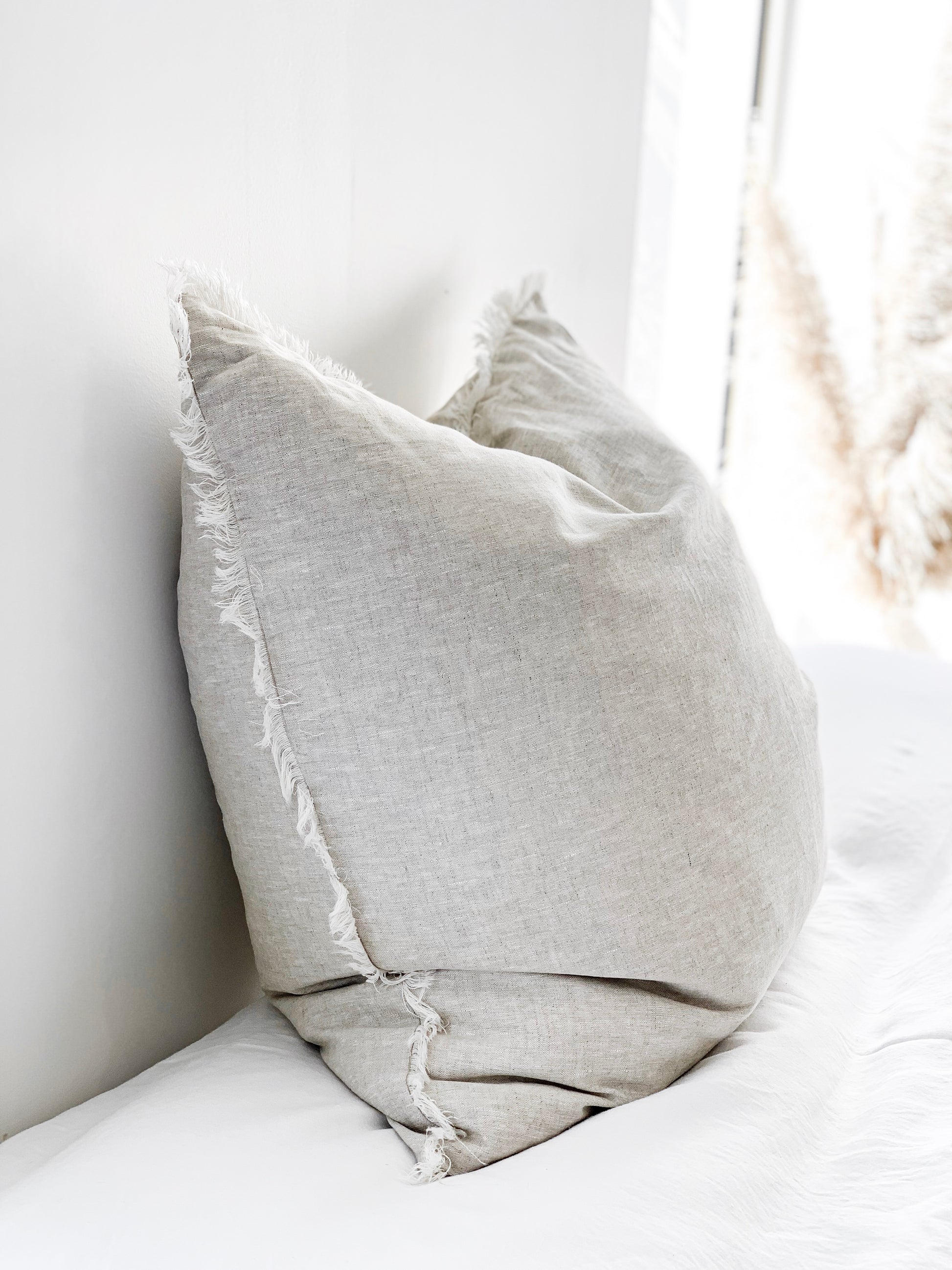 FRINGED - hand-finished with a soft, fringed border for a raw/country/coastal feel.