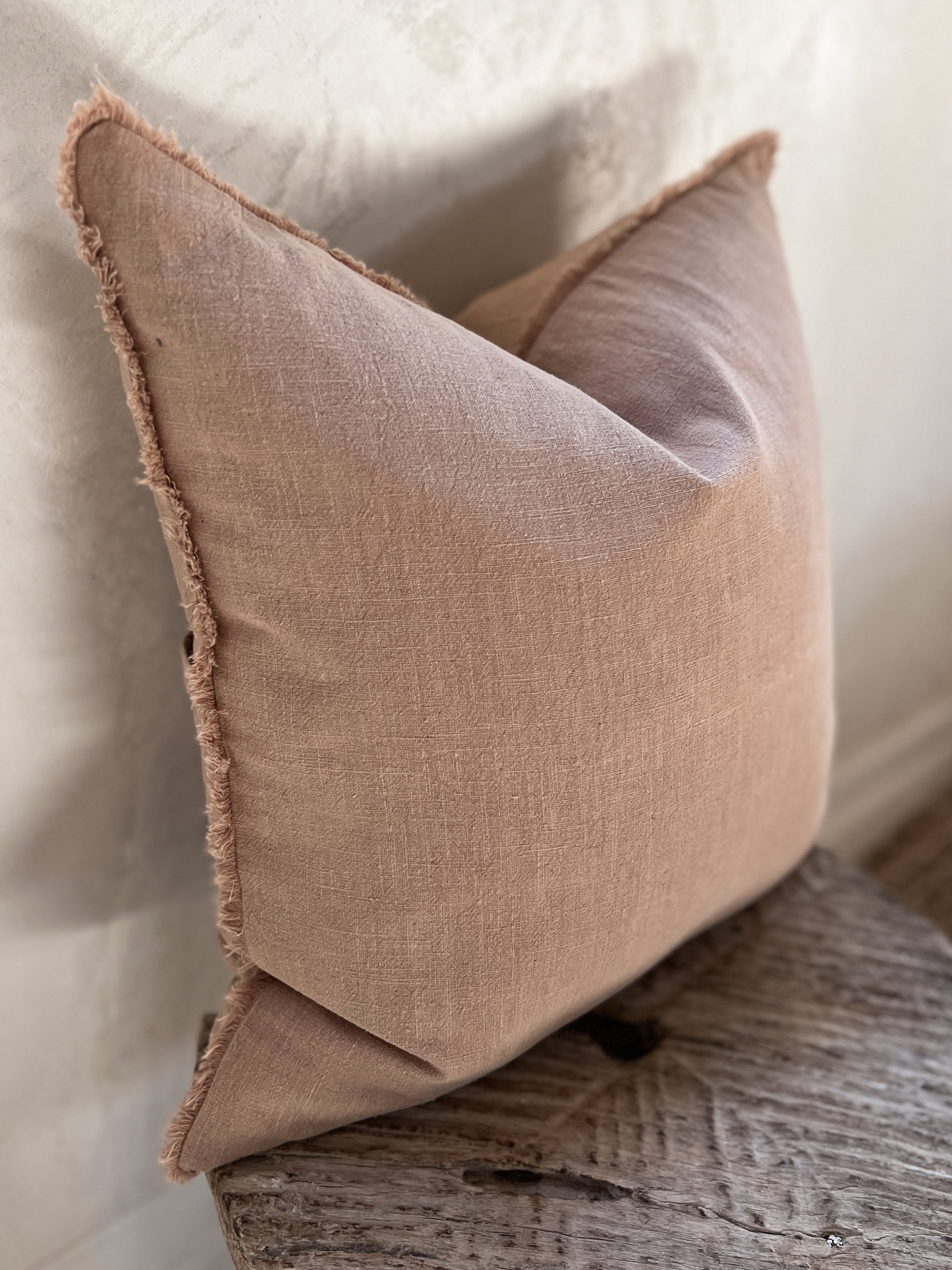 FRINGED - hand-finished with a soft, fringed border for a raw/country/coastal feel.