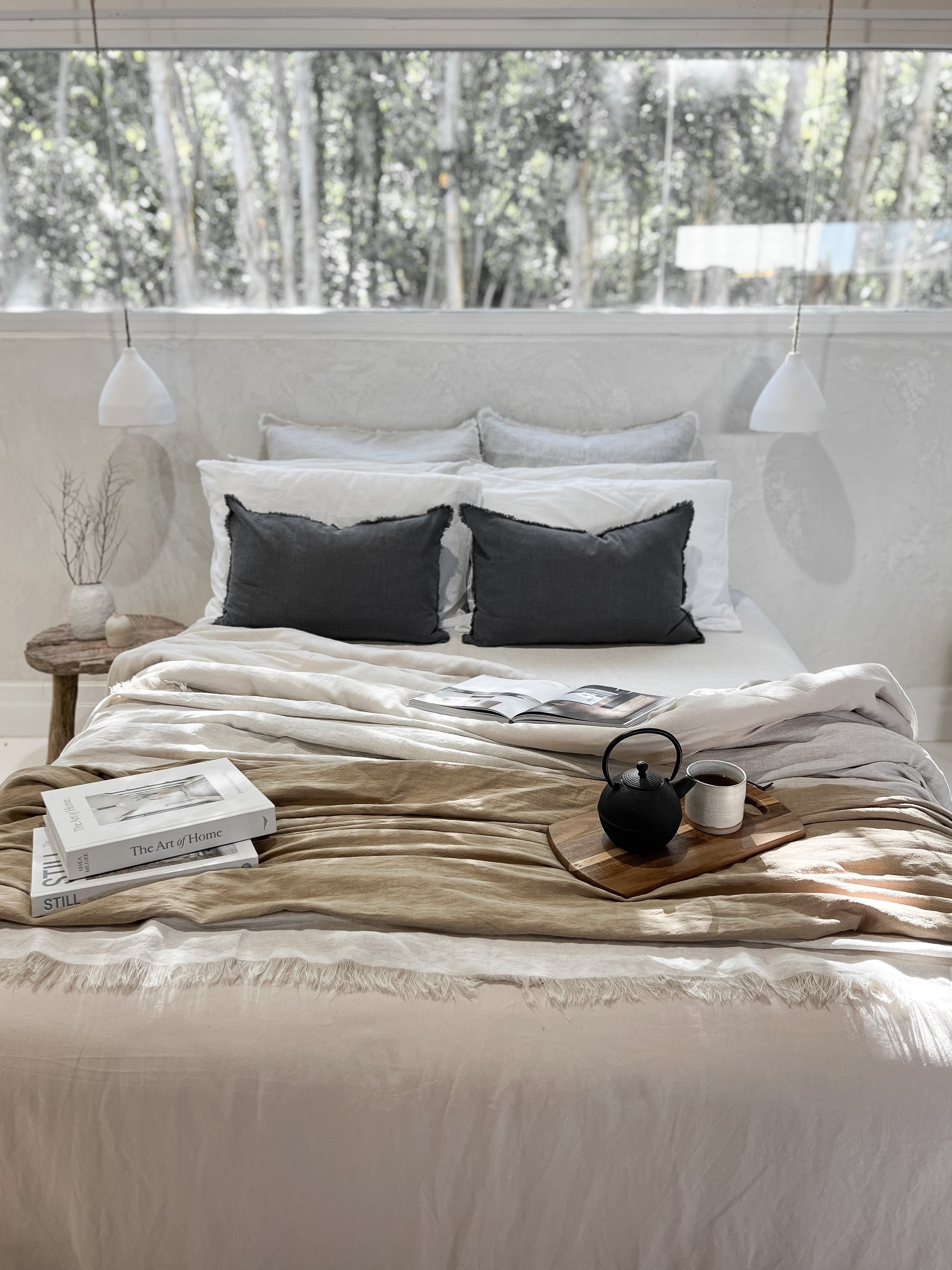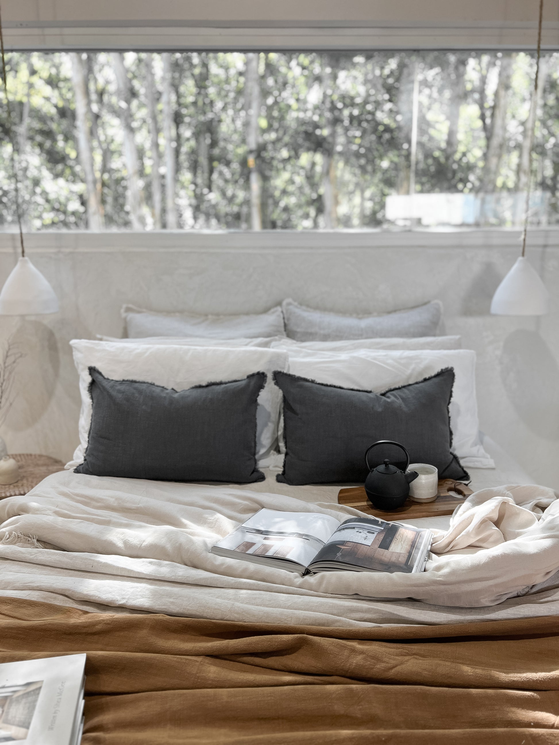 FRINGED - hand-finished with a soft, fringed border for a raw/country/coastal feel.