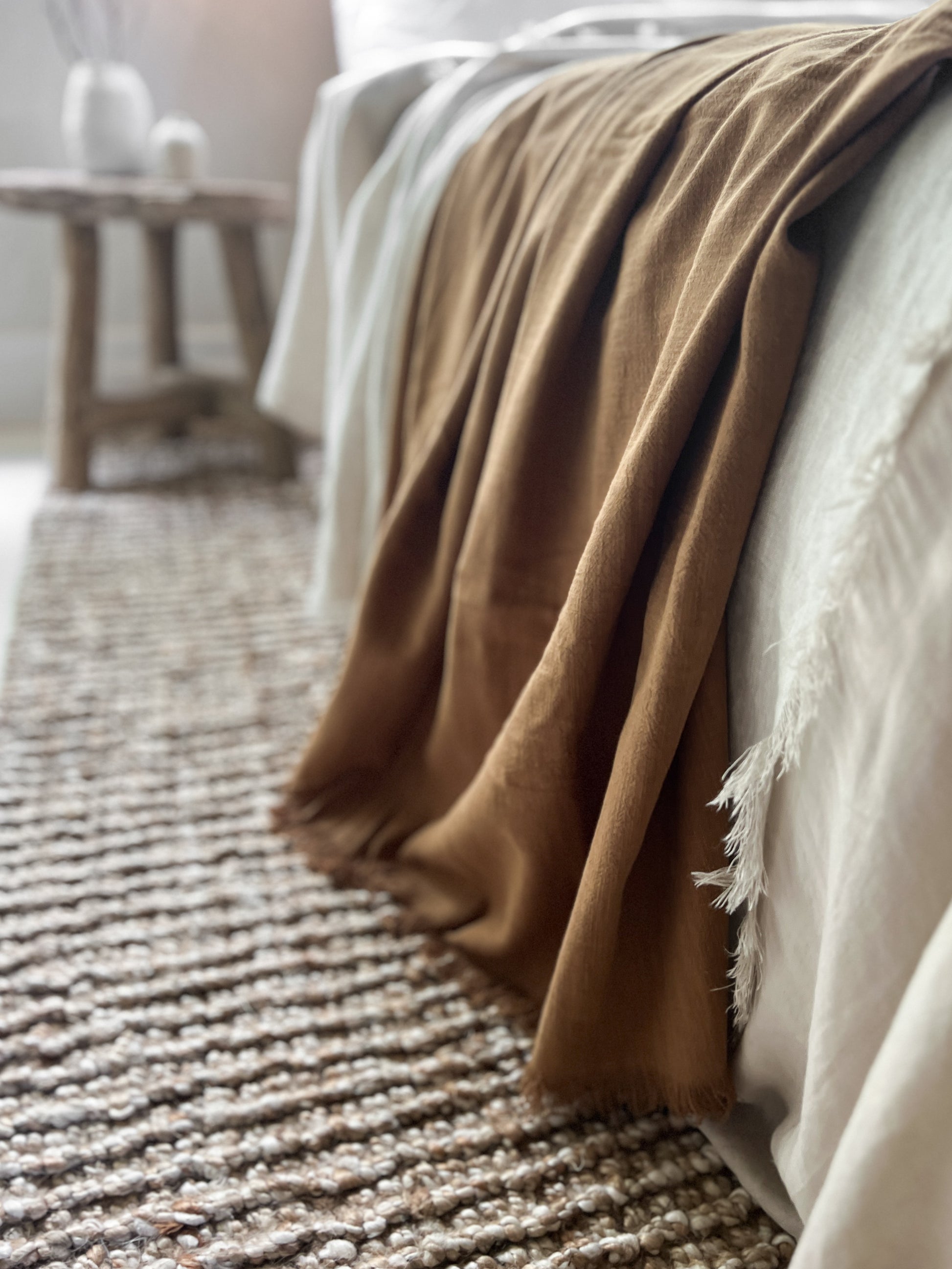 Ramie Fringed Throw - Cinnamon
